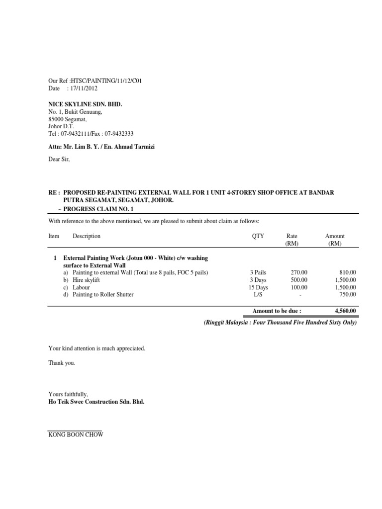 Sample Quotation Letter For Construction Work | Classles Democracy